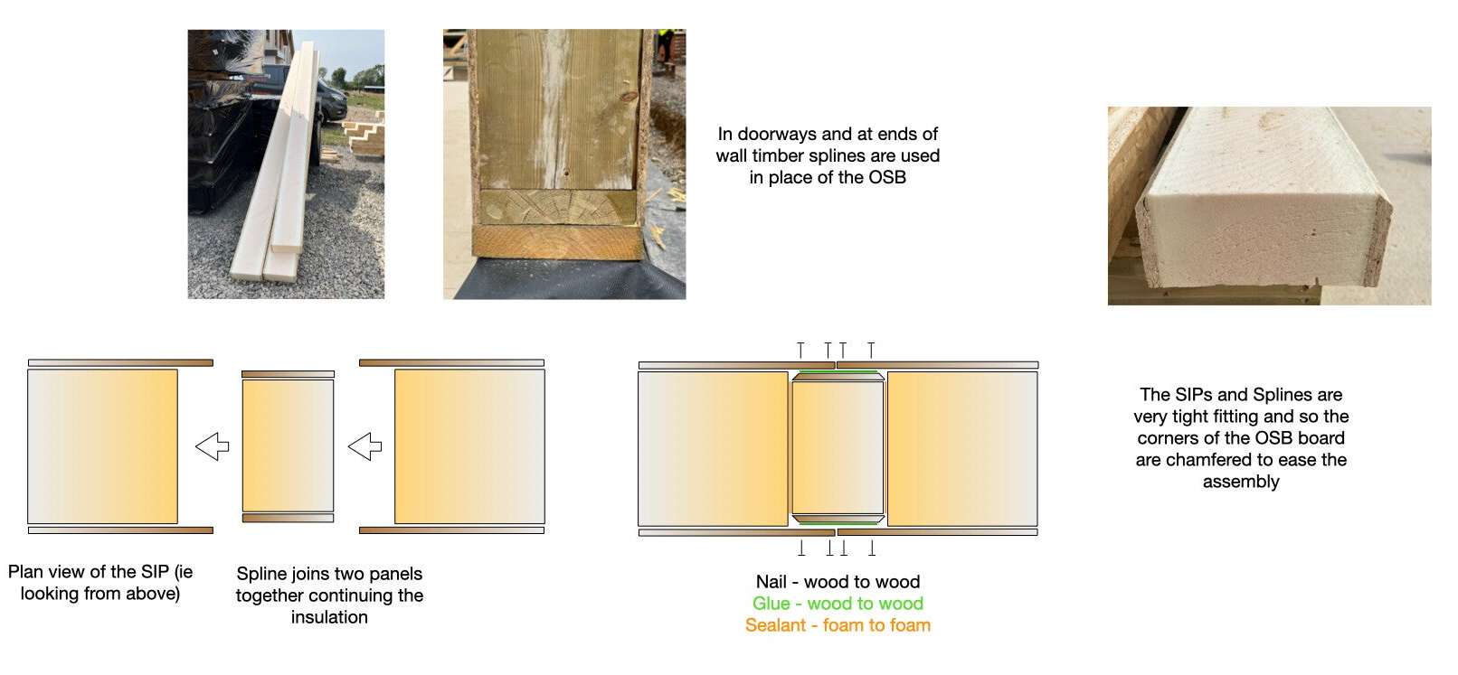 The second join is between panels. A narrow joining section of SIP, called a spline, is used and fits extremely tightly between two adjacent panels - as illustrated below.