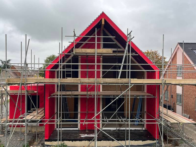 Compared to a traditionally built houses we have made great progress over the last 4+ months but over the last couple of weeks we have experienced a few hic-cups. The most testing issue (in true Grand Designs style 🙂) is the installation of the windows. The bespoke, triple-glazed windows for our rear glazed gable end are lovely, and just what we wanted, but are very heavy. Even manually off-loading the glass takes a five man team. The next step is to find a way of lifting the glass into position 3+m above the ground (NB the frames are already). The most likely solution is to use a spider crane - unfortunately this wasn't budgeted for, nor were the costs of operators (apparently you need three people to guard against the risk of something going wrong).