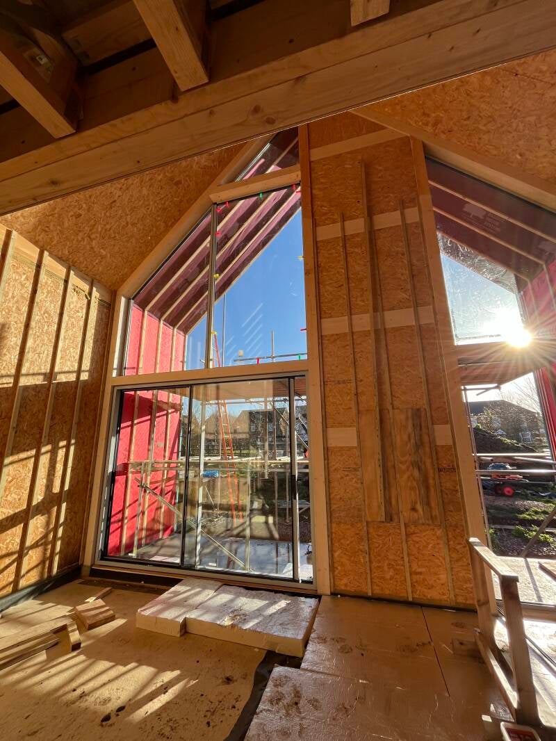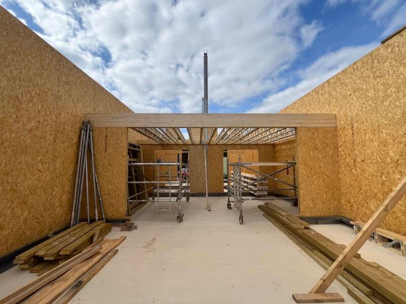 4 Sept - Day 43 Glulam frame for rear gable end taking shape