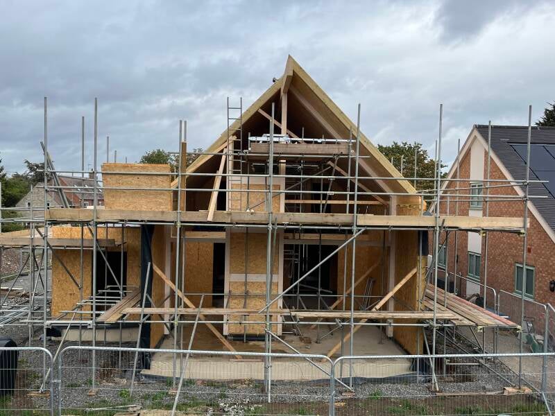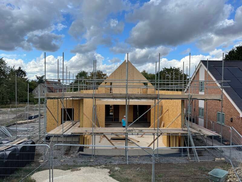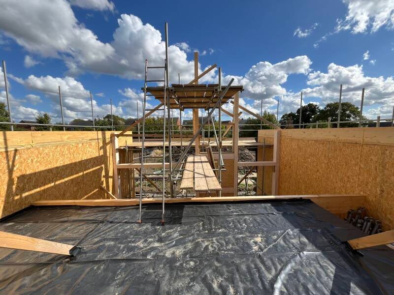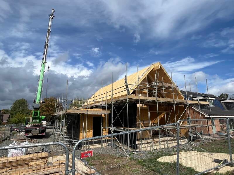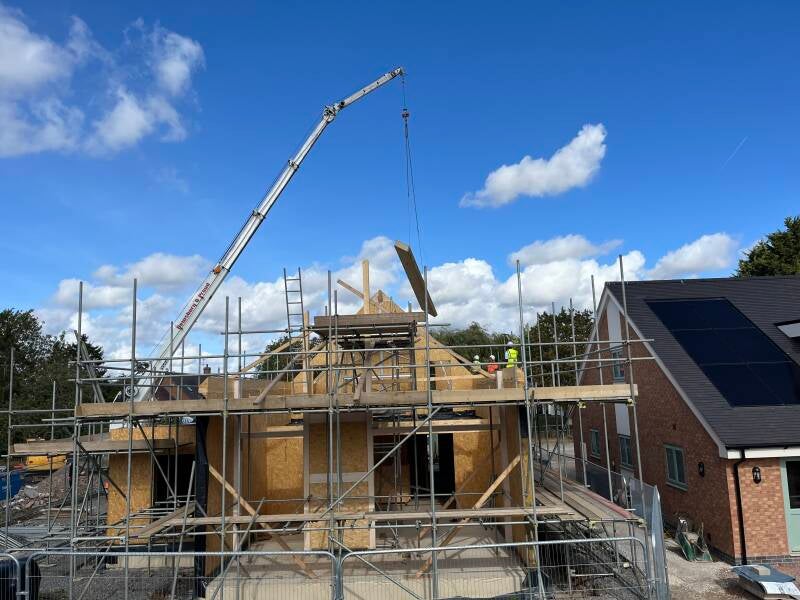 9 Sept - Day 44 roof structure (SIPs) lifted into place