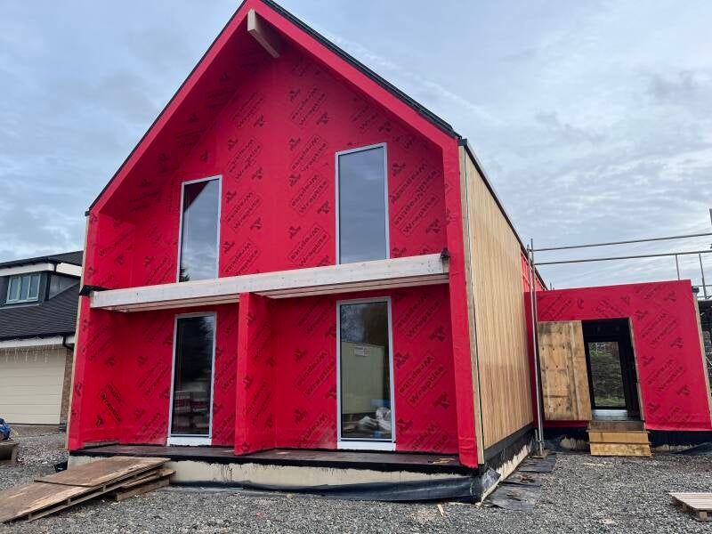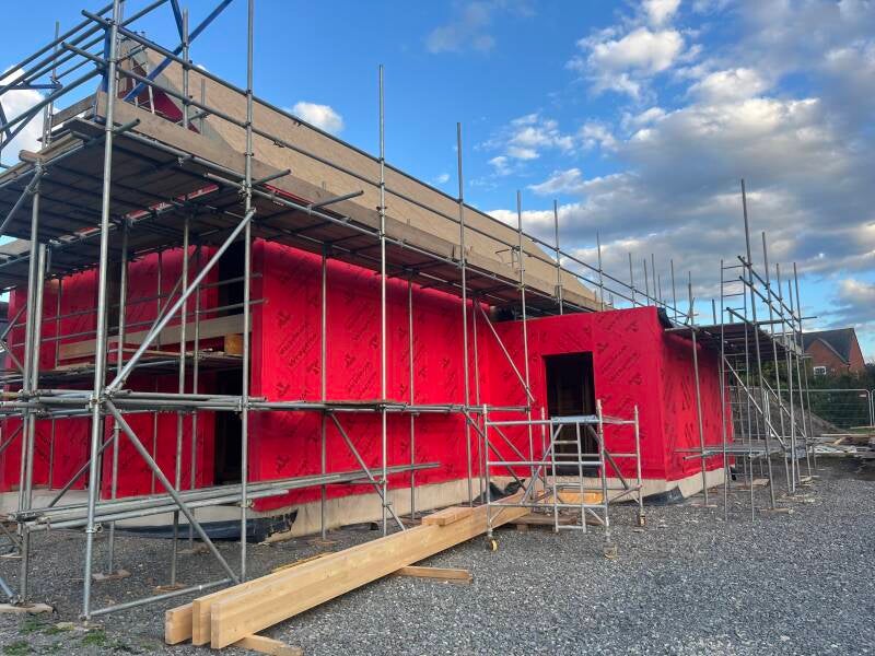 17 Sept - Day 50 the house starts to get wrapped in it's breathable, waterproof membrane