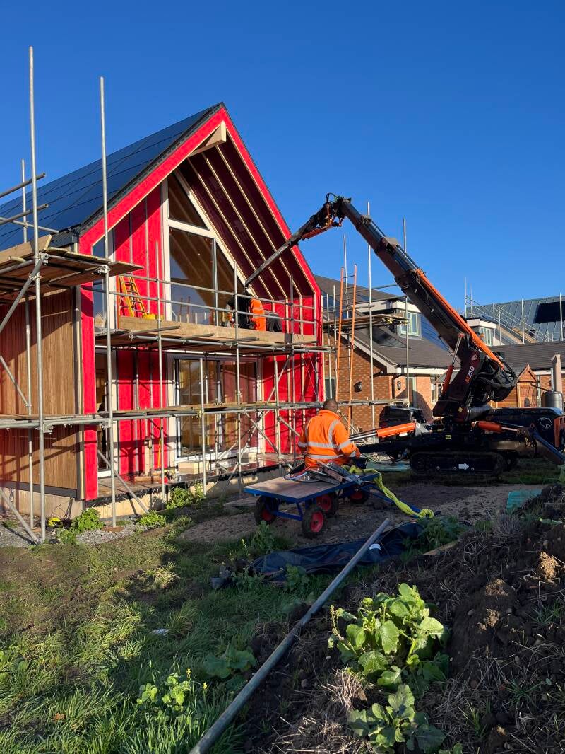 13 Nov - Day 84 Timber Cladding two thirds complete and solar installation starts